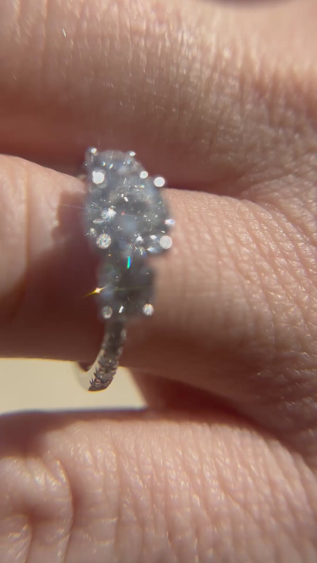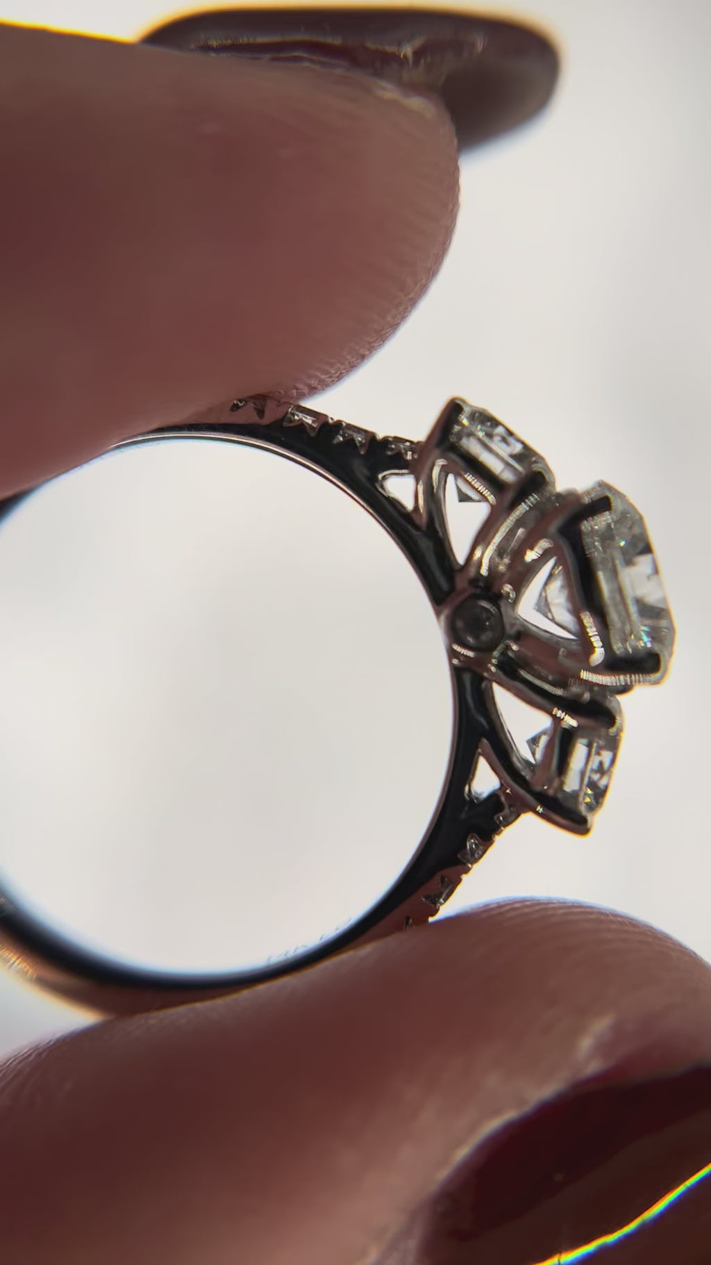 Elevate your elegance with this 14K white gold three-stone ring featuring lab-grown diamonds totaling 1.80 carats. The design showcases a stunning 1-carat round center diamond flanked by two round lab-grown diamonds, each approximately 0.25 carats. Expertly crafted, this ring combines sustainable luxury with timeless brilliance. • Crafted from durable 14K white gold for lasting shine • Features ethically sourced lab-grown diamonds with exceptional clarity • Three-stone setting symbolizes past, present, and future • Total diamond weight of 1.80 carats enhances sparkle and presence • Ideal for engagements, anniversaries, or special occasions