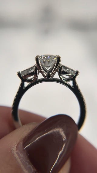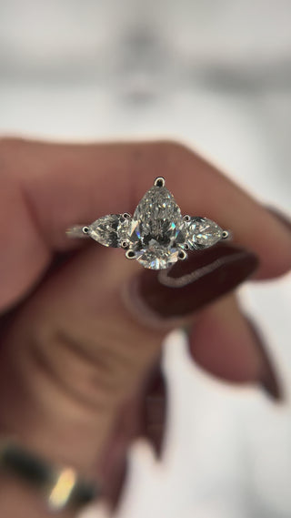 14K White Gold 3 Stone Lab Grown 1.60ctw 3 Stone Round Ring with 1ct Pear Center
