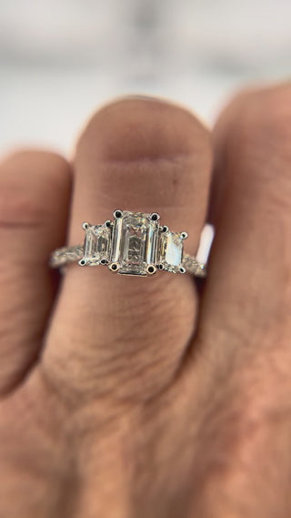 14K White Gold 3 Stone Lab Grown 2 Emarld Cut 1/4ct Diamonds With 1ct Emerald Center Diamond 1.80cttw