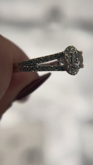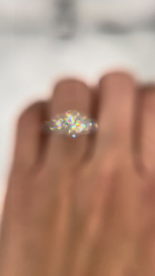 14K White Gold 3 Stone Lab Grown 1.60ctw 3 Stone Round Ring with 1ct Oval Center