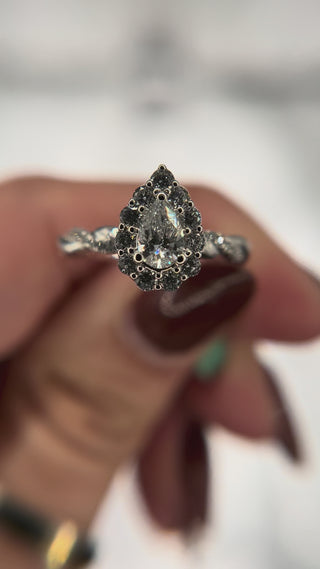 14k White Gold Lab Grown 3/8ctw Melee Set Diamond Ring with Under Head Halo Round 2ct Center