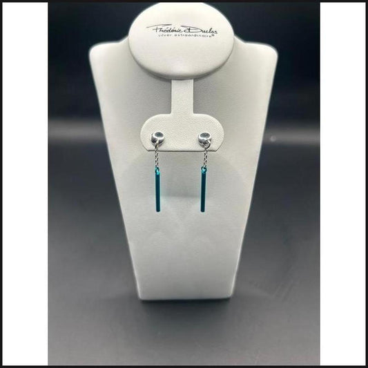 Sterling Silver + Ocean Blue Slender Earrings