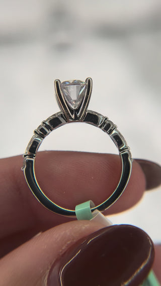 This 14k white gold semi-mount wedding ring is expertly crafted to showcase a stunning 2-carat oval center stone of your choice. Featuring 1/2 carat total weight of lab-grown diamonds, it offers brilliant sparkle and ethical elegance. The design balances classic sophistication with modern craftsmanship, providing a perfect foundation for a personalized engagement ring. Details: - Metal: 14k white gold - Diamond type: Lab-grown - Total diamond weight: 1/2 carat (accent stones) - Setting: Semi-mount designed for a 2-carat oval center stone - Style: Elegant and versatile, ideal for custom center stones