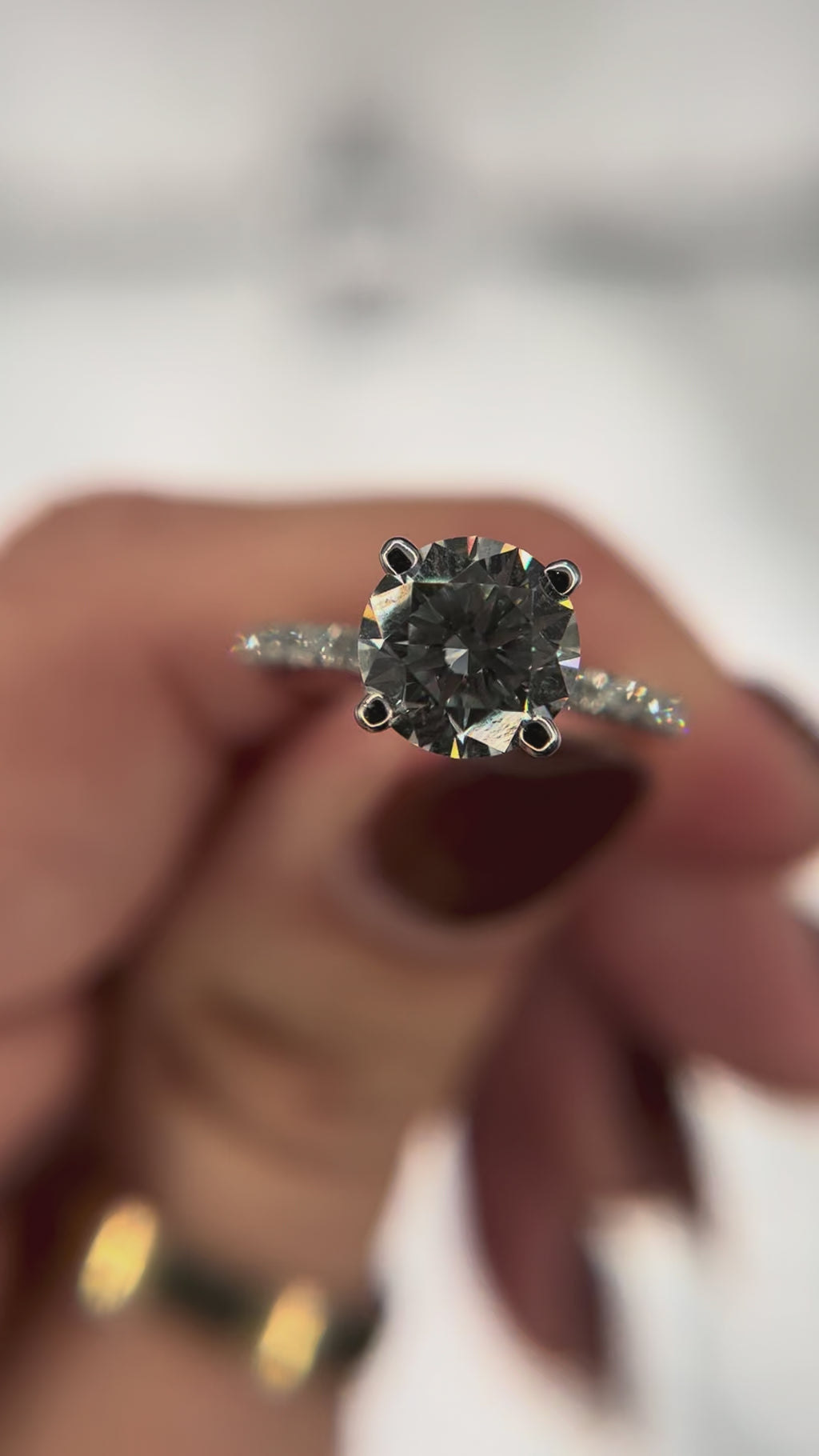 This exquisite 14k white gold ring features a stunning 2-carat round center diamond, accentuated by a delicate under-head halo that enhances its brilliance. Surrounding the centerpiece, a 3/8 carat total weight melee diamond setting adds refined sparkle and depth. Expertly crafted, this ring combines classic elegance with intricate detailing, making it a timeless statement piece for discerning jewelry connoisseurs.