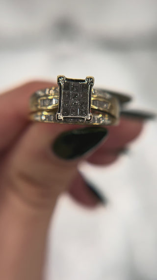 14kw PC center diamond w- round diamond halo accent & 2 matching diamond bridal bands soldered set