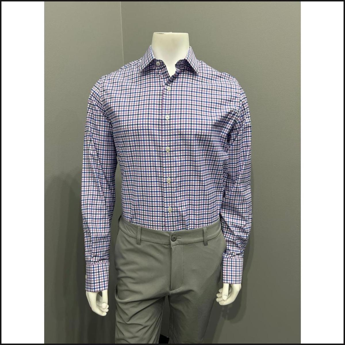 Exclusively crafted by Stantt for That Guy's Secret, this plaid button-down shirt features a refined purple and navy tattersall twill pattern. Expertly detailed with contrast button stitching, it combines classic style with subtle modern accents. Designed for easy care, the shirt is machine washable in cold water and can be tumble dried on low, ensuring lasting quality and comfort.