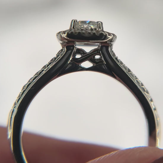 Expertly crafted in lustrous 14k white gold, this breathtaking ring boasts a stunning 1/2 carat princess cut diamond. The perfect combination of elegance and modern style, this ring is sure to make a statement. Elevate any outfit with the sparkling brilliance of this timeless piece.
