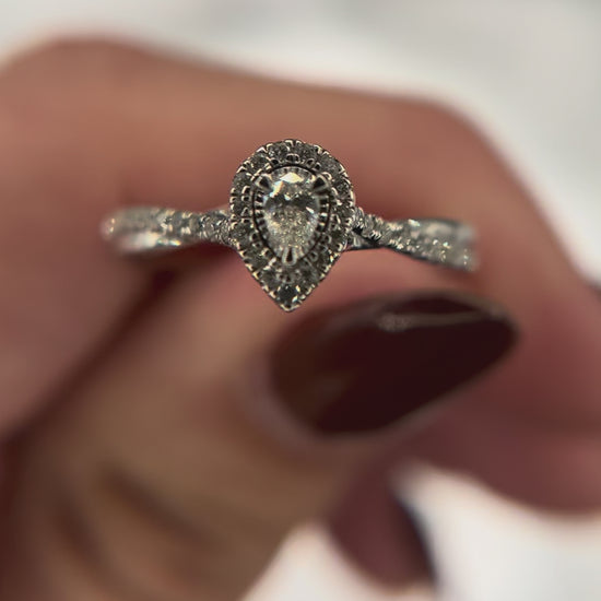 14K White Gold Diamond 1/4 ctw Pear Halo Ring