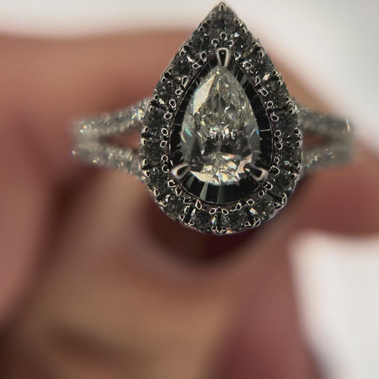 14K White Gold Diamond 1 ctw Pear Halo Ring