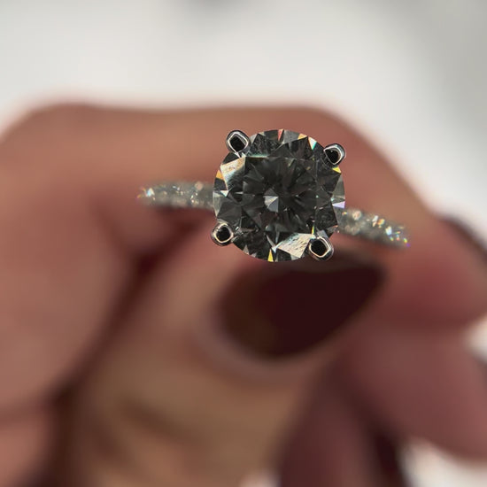 14k White Gold Lab Grown 3/8ctw Melee Set Diamond Ring with Under Head Halo Round 2ct Center
