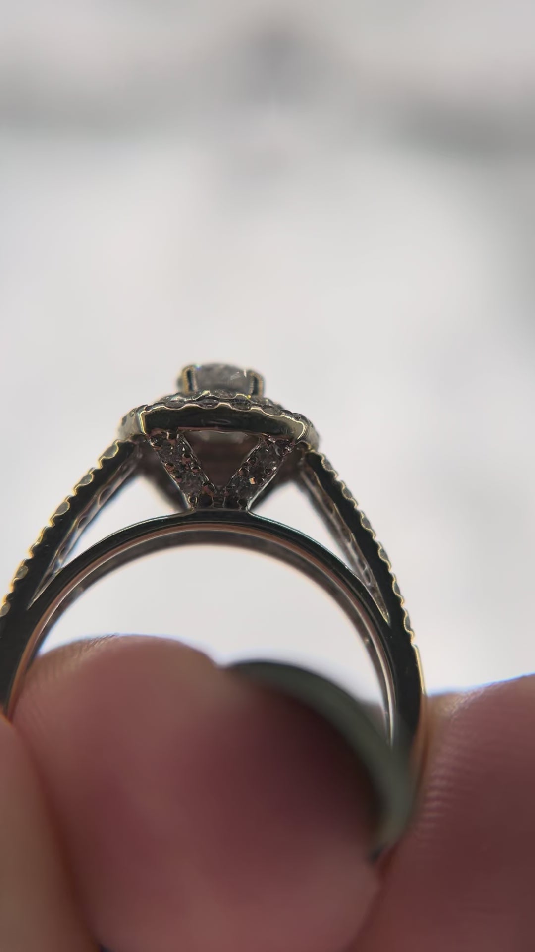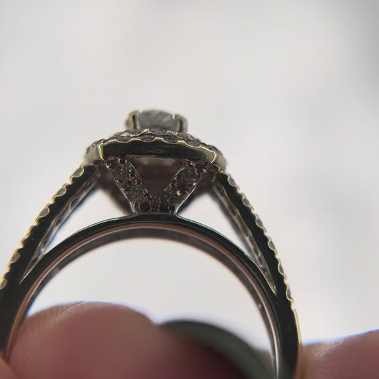 14kw 1.0ctw diamond double halo engagement ring w- split shank