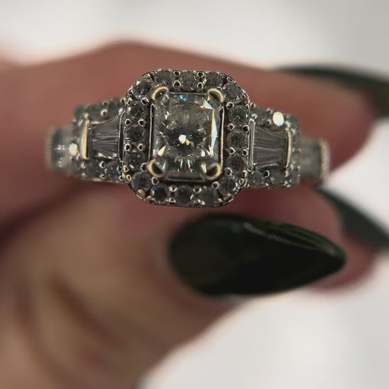 14kw 3-4ctw H SI1 Radiant center w- round & baguette cut accent diamonds engagement ring