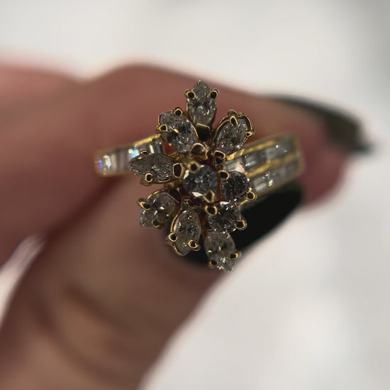 18ky Diamond Cocktail Ring sz 7.0