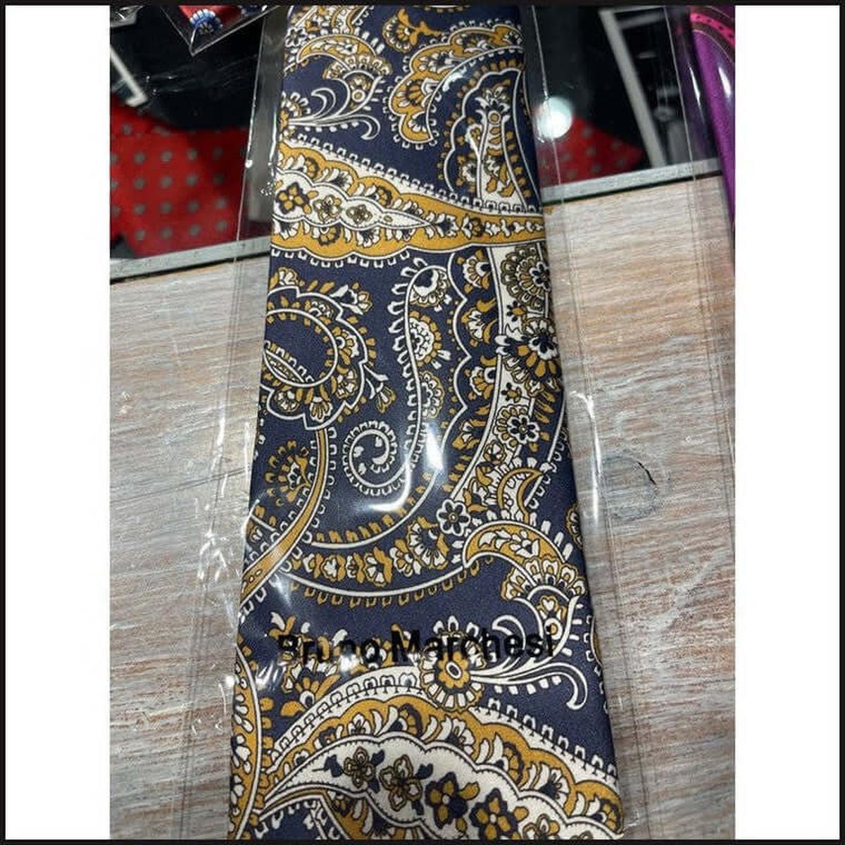 Elevate your style with Bruno Marchesi Ties – where quality meets style. Explore a spectrum of exquisite patterns and colors meticulously crafted to redefine sophistication including Yellow with Blue Flowers and Diamonds, Royal Blue & Brown Paisley, Brown & Royal Blue Paisley, Light Blue with Red & Brown Paisley, Yellow with Brown & Blue Dots, Rust with Yellow & Blue Flowers, Red with Blue & White Dots, Navy with Yellow Squares, Brown with Yellow & Blue Designs, Blue with Red Flowers & Navy Diamonds, Red with Blue Flowers & Diamonds, Beige & Navy Paisley, Light Blue with Navy & Tan Flowers, Green & Navy Paisley, Green & Royal Blue Paisley. Stand out with our diverse collection tailored for both formal and casual occasions. Redefine your wardrobe with Bruno Marchesi for unparalleled elegance and attention to detail.